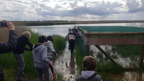 Miembros del Consejo de Infancia liberan, en el Complejo Lagunar de Alcázar, 19 ejemplares de cerceta pardilla