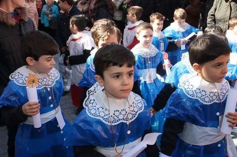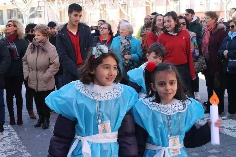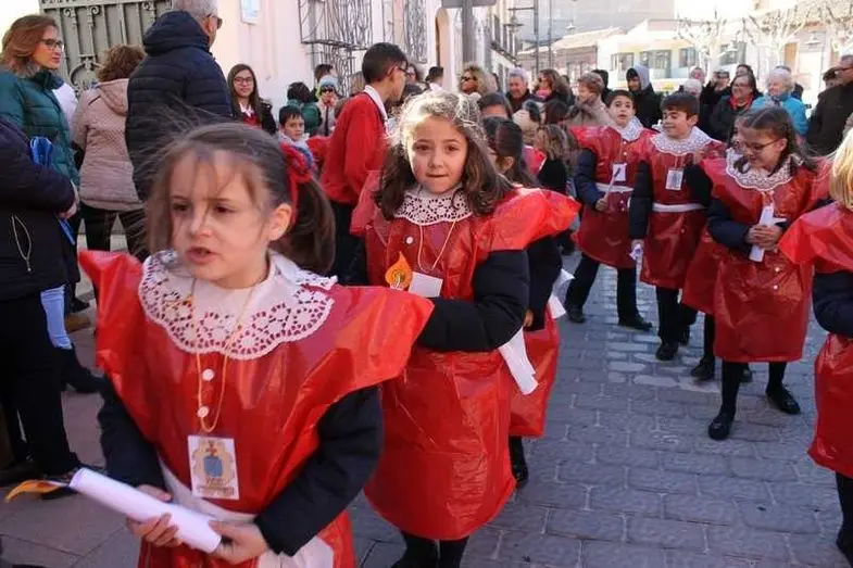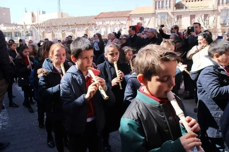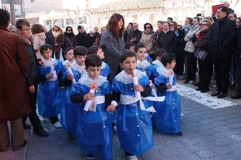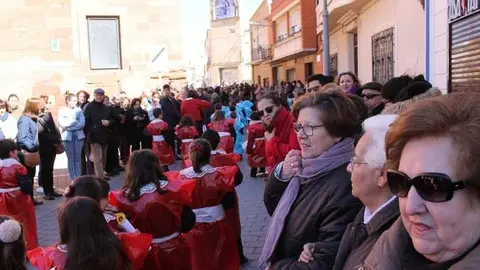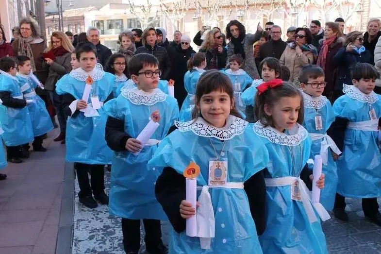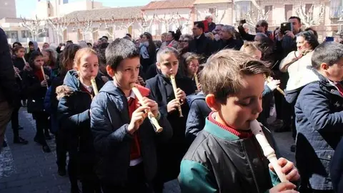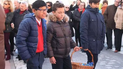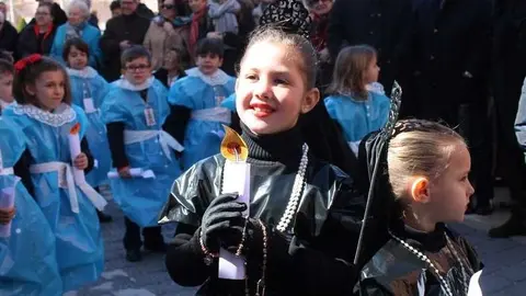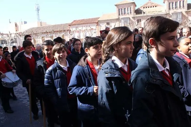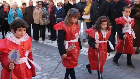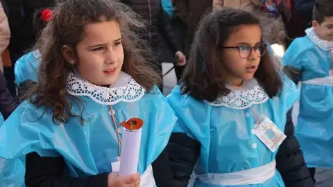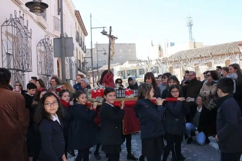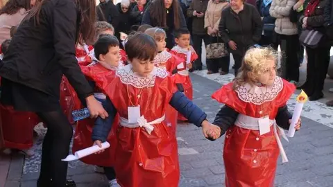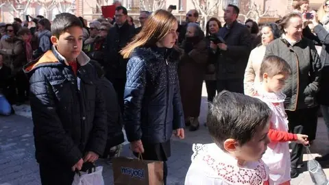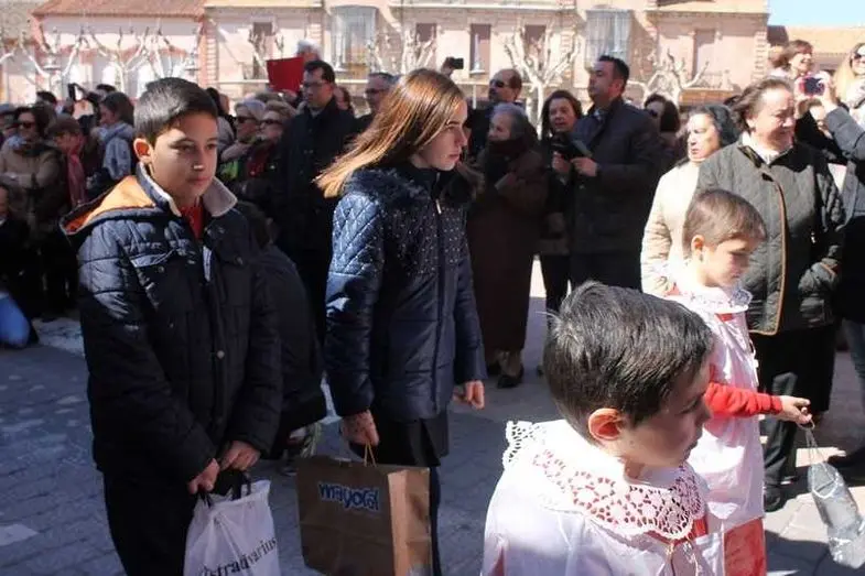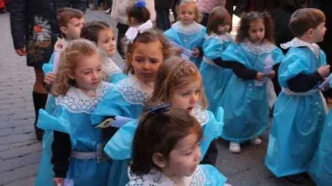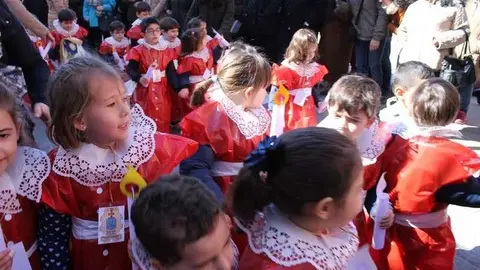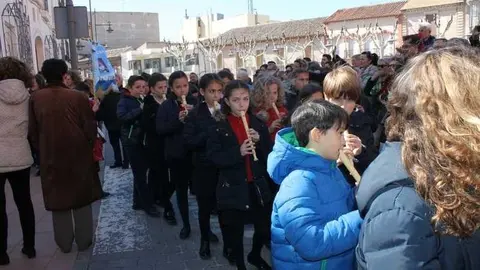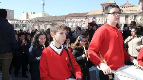 Multitudinaria procesión de los alumnos del colegio de la Sagrada Familia por las calles de Alcázar