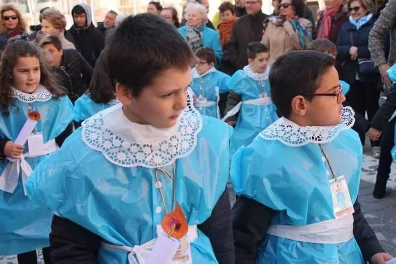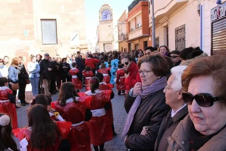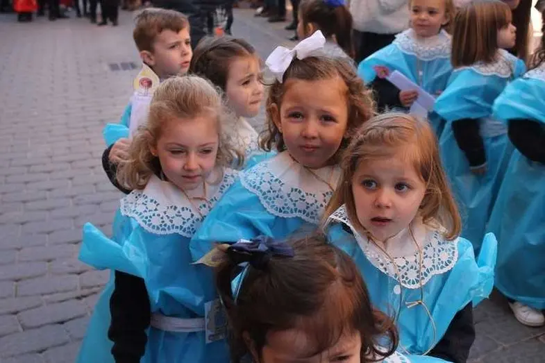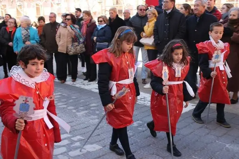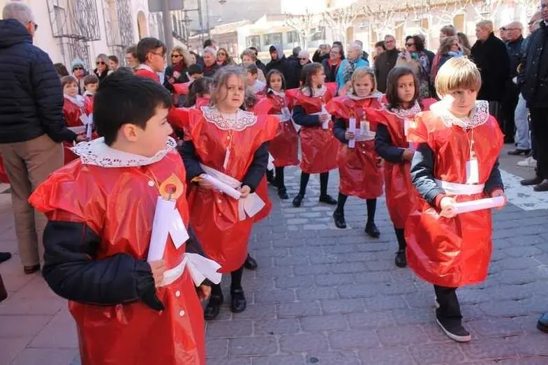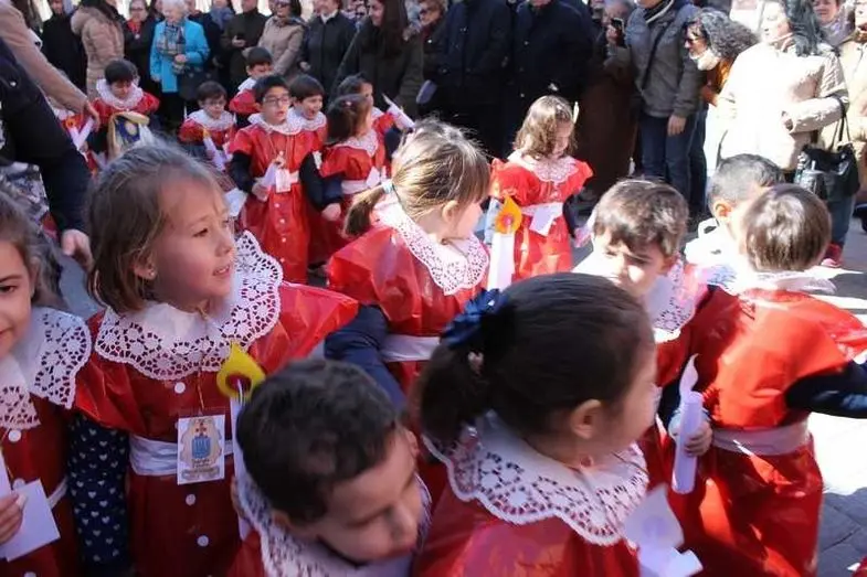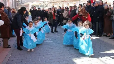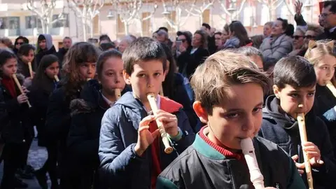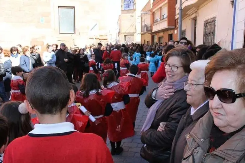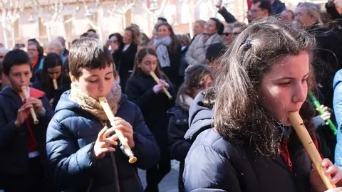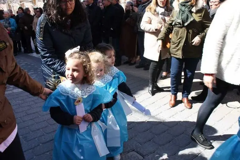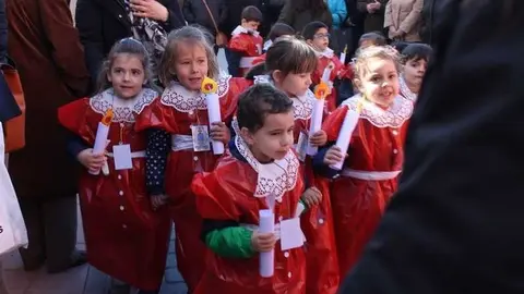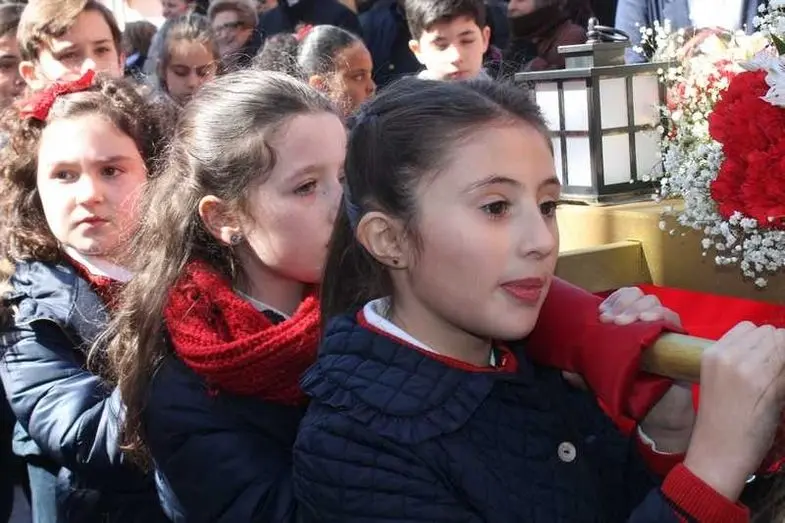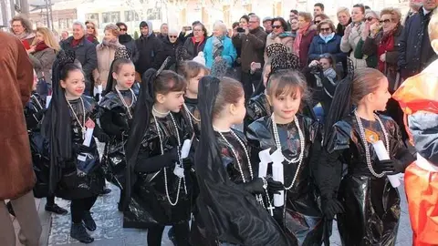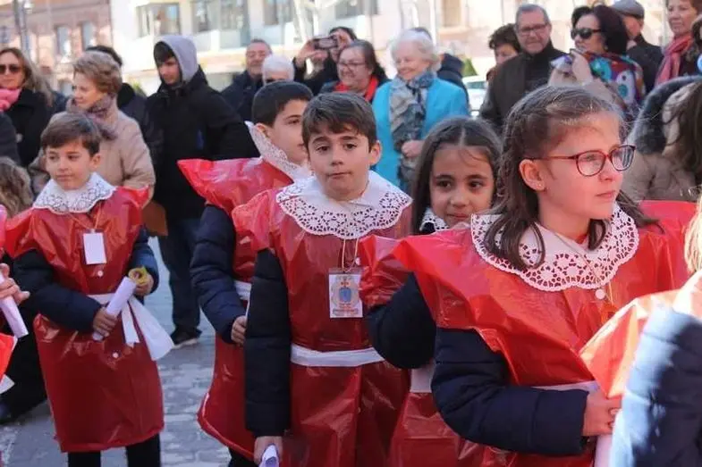 Multitudinaria procesión de los alumnos del colegio de la Sagrada Familia por las calles de Alcázar