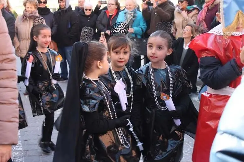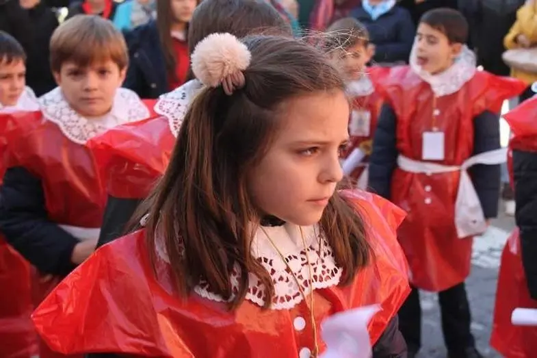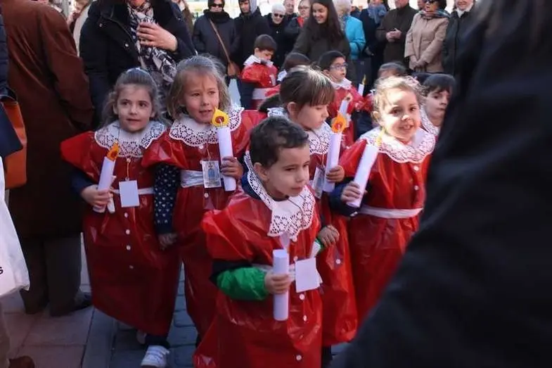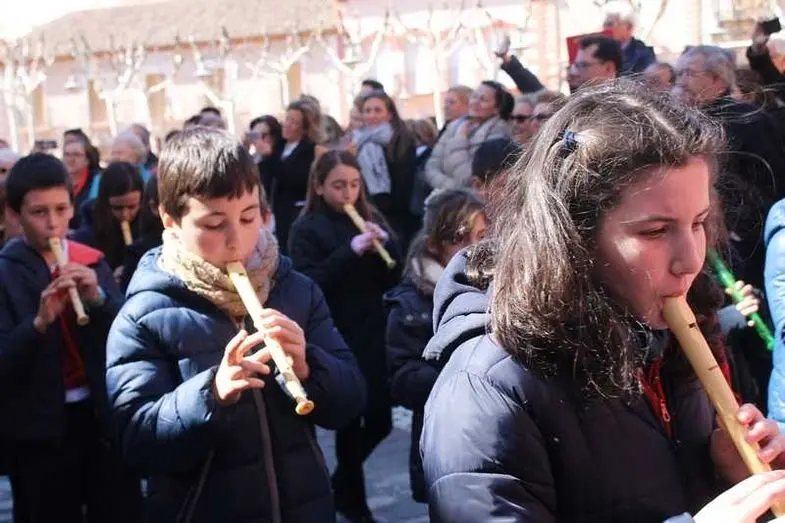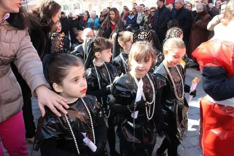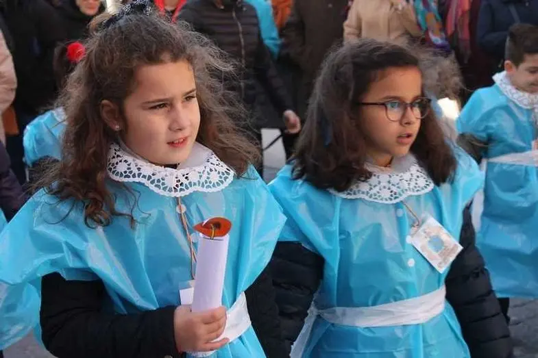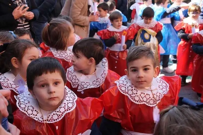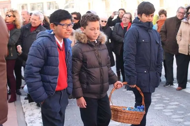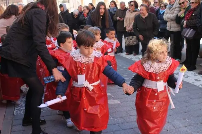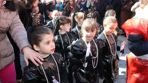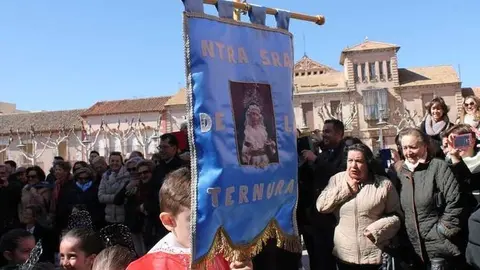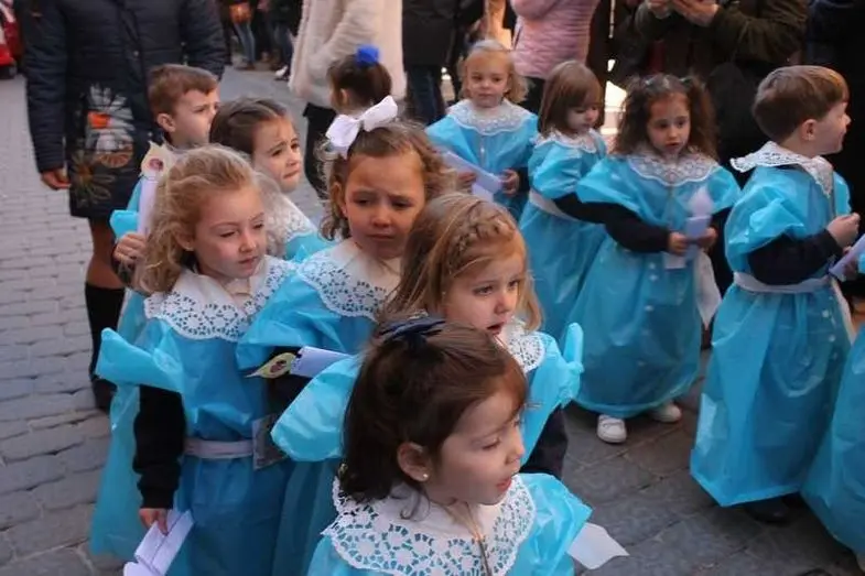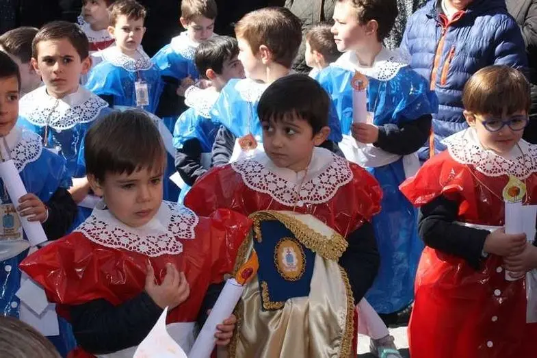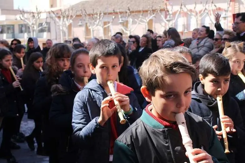 Multitudinaria procesión de los alumnos del colegio de la Sagrada Familia por las calles de Alcázar