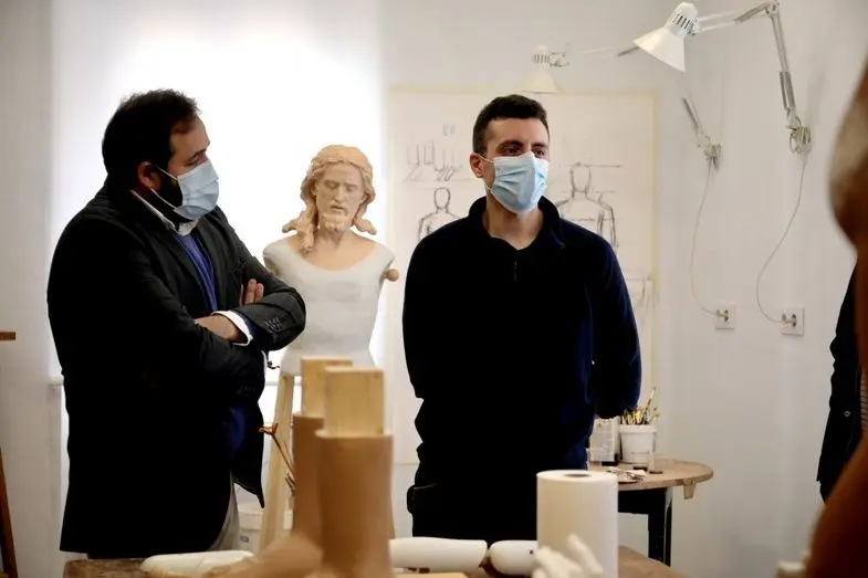 Núñez visita al imaginero Francisco J. Muñoz de Campo de Criptana