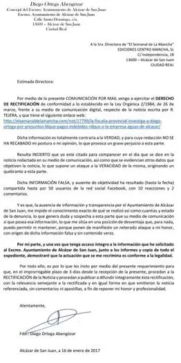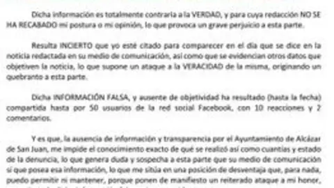 Ortega asegura que la citación en la Fiscalía "por pagos indebidos" a Aguas de Alcázar "es incierta"