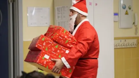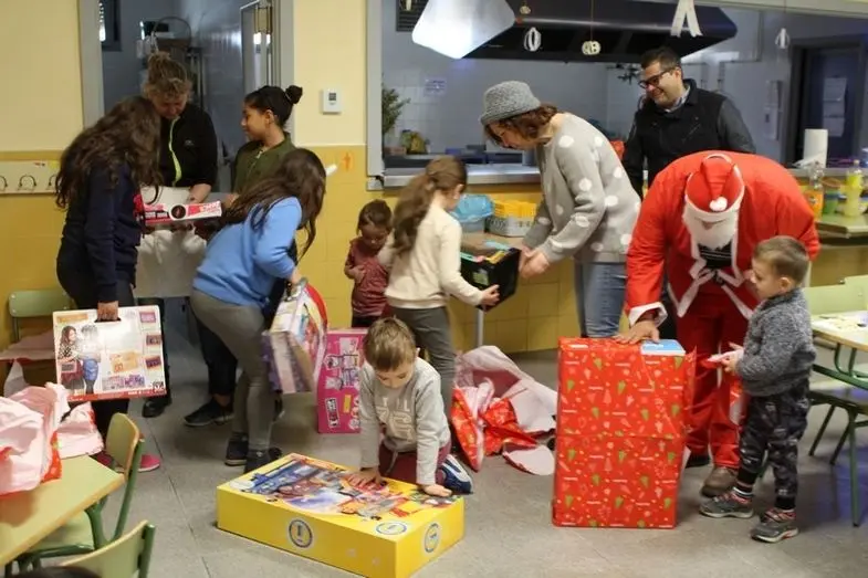 Papá Noel sorprendió con regalos a los niños del comedor escolar navideño