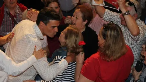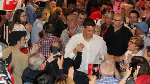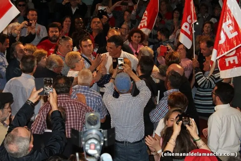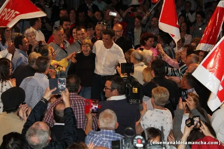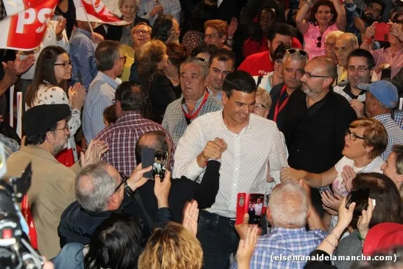 Pedro Sánchez es aclamado en Alcázar como "el candidato de la militancia"