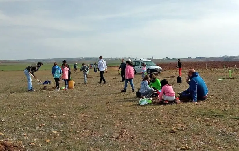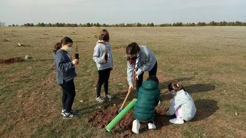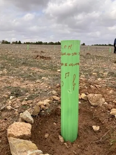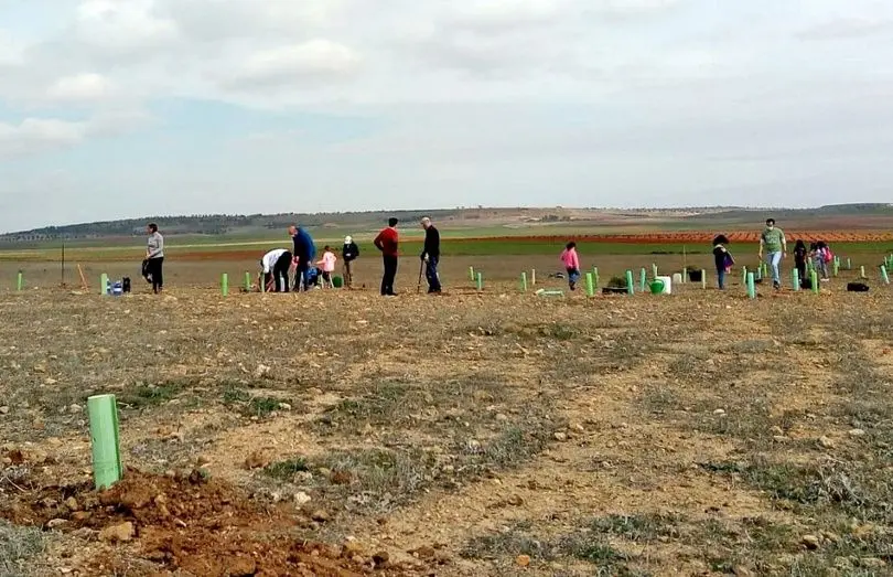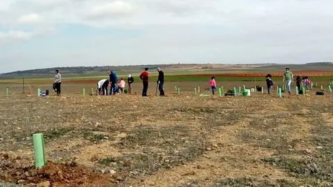 Plantación en La Cañamona gracias a "Encinares Vivos"