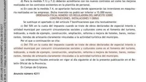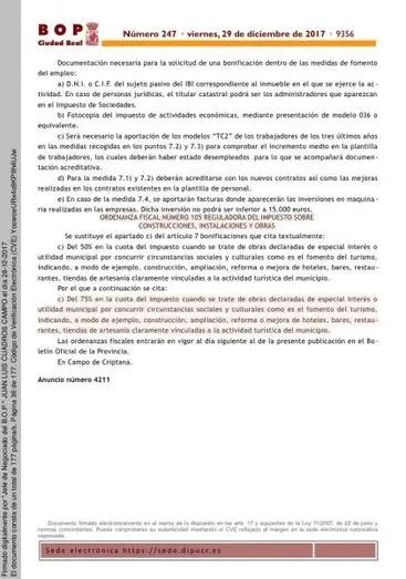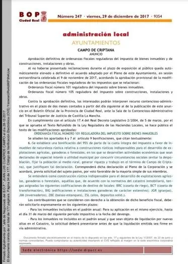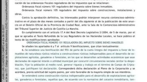 Publicada oficialmente la “mayor bajada de impuestos de la historia en Campo de Criptana”