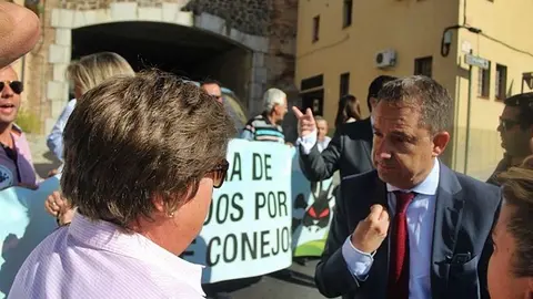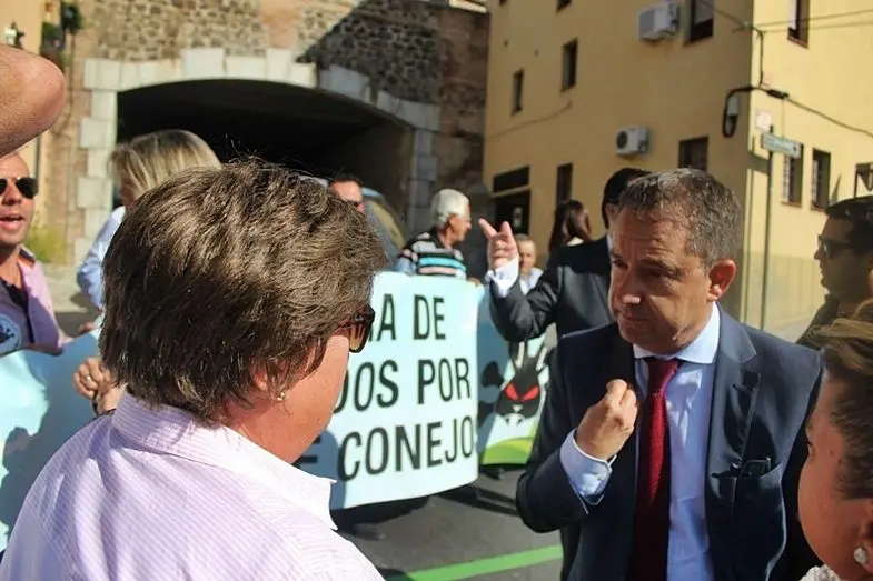 Representantes de la Plataforma de Damnificados por la Plaga de Conejos se concentran ante las Cortes de Castilla-La Mancha