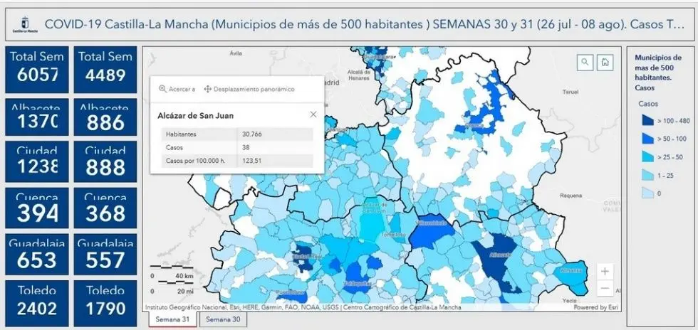 Tendencia a la baja en la incidencia de la Covid19 en los municipios de La Mancha Centro