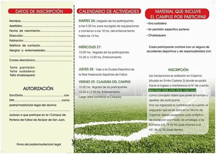 Todo listo para el I Campus de Porteros de Fútbol "Ciudad de Alcázar"