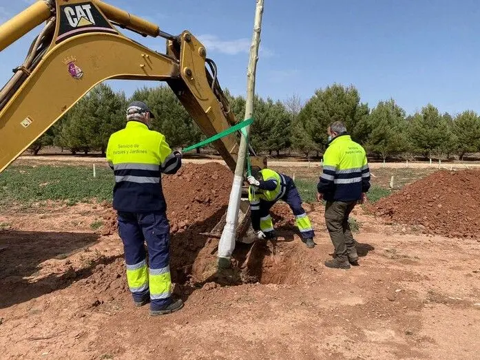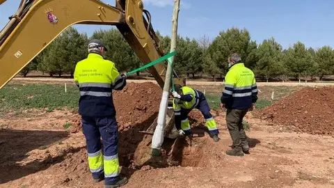Trasplantados en el Bosque de la Vida los árboles del entorno de la plaza de toros de Alcázar