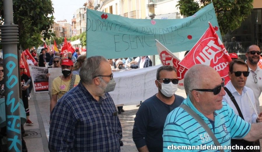 Decenas de personas han salido este 1º de Mayo a la calle en Alcázar de San Juan para seguir reclamando mejoras en los distintos aspectos sociales y laborales de sus vidas, en esta ocasión con el lema “Subir salarios, contener precios, más igualdad” y con especial mención a las trabajadoras de la Ayuda a Domicilio, que mantienen jornadas de huelga.