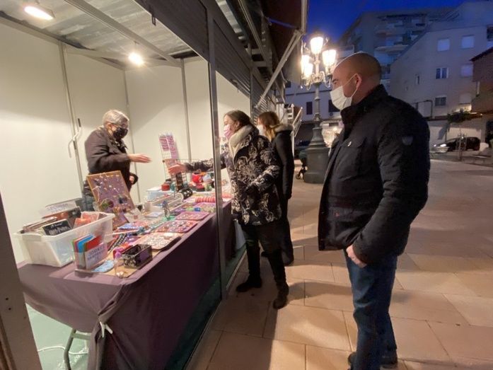La alcaldesa, Rosa Melchor, el concejal de Festejos, Juan Benjamín Gallego y la concejala de Comercio, Bárbara Sánchez-Mateos, visitaron el Mercado Navideño en la tarde del pasado viernes con motivo de su apertura.