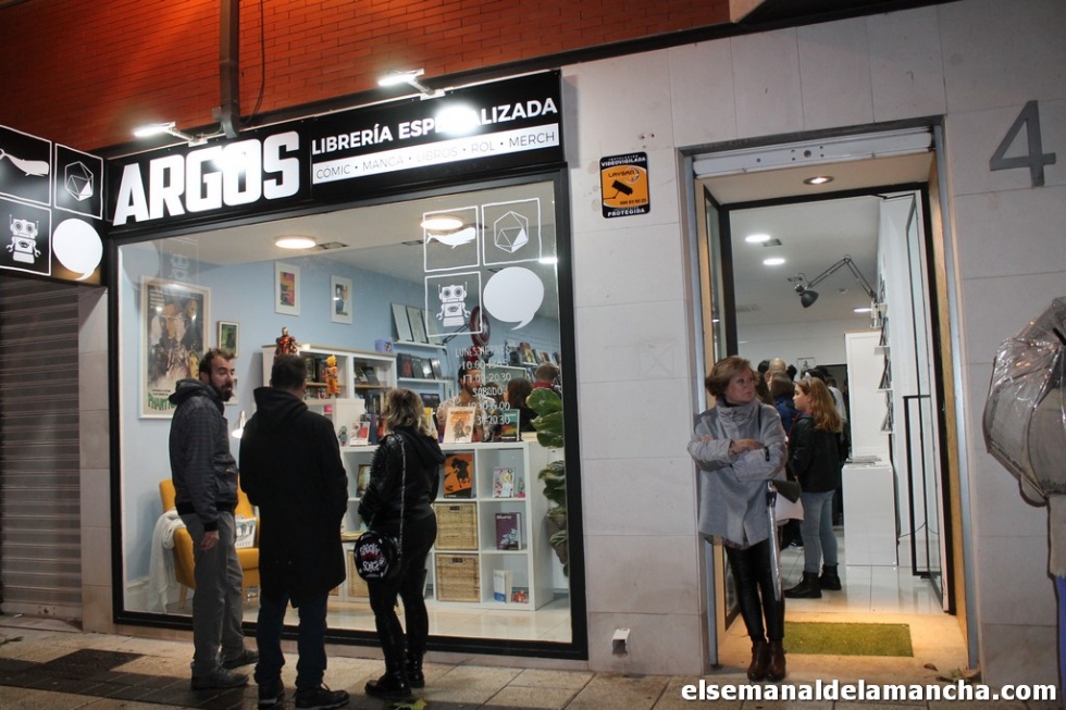 La Librería Argos, ubicada en la calle Álvarez Guerra, 4 de Alcázar de San Juan, ya es una realidad en la ciudad. Abierta hace quince días, ayer inauguró sus instalaciones con la presencia de multitud de vecinos y autoridades municipales, y apadrinados por el autor de cómic Juan Torres, amigo de los artífices de este nuevo proyecto: Bruno Redondo, Héctor Martínez, Emilio García y Jesús Rodríguez.