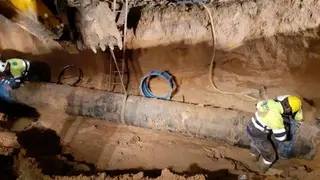 Para las tareas de reparación, Aguas de Alcázar contó con hasta doce profesionales, tres máquinas retroexcavadoras, además de todos los medios materiales necesarios. Una avería, que gracias a la rápida respuesta y entrega de los profesionales de Aguas de Alcázar, se ha resuelto sin interrumpir el suministro a la población.