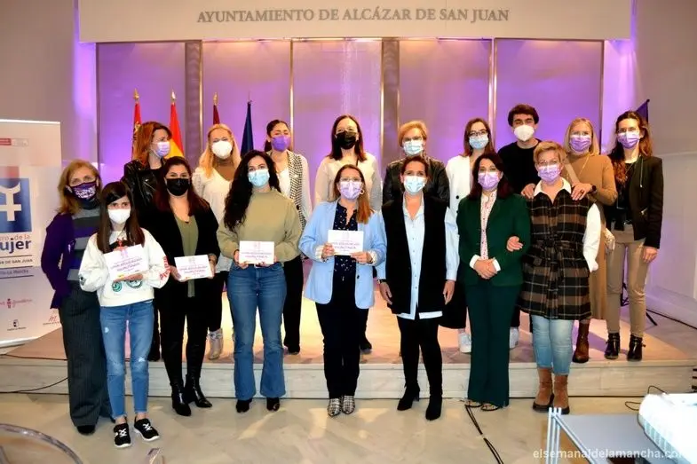 Bajo el lema "De igual a igual", el salón noble del Ayuntamiento de Alcázar de San Juan ha acogido esta tarde el acto institucional organizado en este municipio con motivo del Día Internacional de las Mujeres. Actividad enmarcada en un amplio programa de actividades, organizadas desde la concejalía de Igualdad durante todo el mes de marzo con la colaboración del Patronato Municipal de Cultura, en el que se incluyen exposiciones, presentaciones de libros y otros actos culturales y sociales dirigidos al empoderamiento de la mujer. Además, este 8 de marzo, la fachada del Ayuntamiento y los molinos de viento del cerro San Antón se han iluminado de color morado.