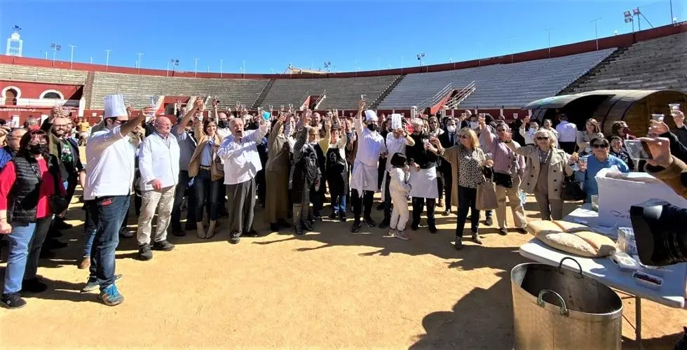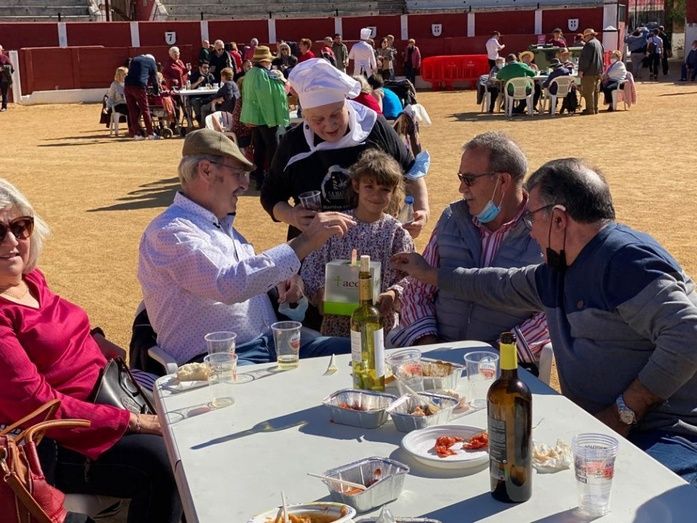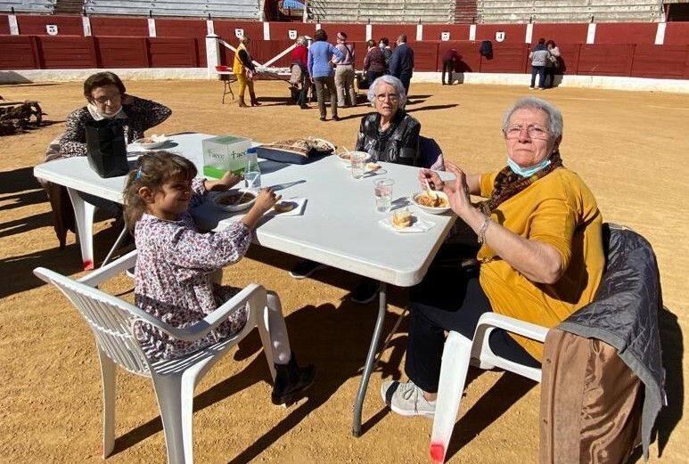 La cita ha tenido lugar en la plaza de toros, donde, con la colaboración del Ayuntamiento, la D.O.La Mancha y distintos colectivos (entre ellos, los Coros y Danzas, la Asociación de Amas de Casa, etc.), los hosteleros han dado de comer a todo aquel que ha querido acercarse para participar en la fiesta y celebrar el 2 de febrero de 2022, una fecha señalada y ya mítica en el calendario alcazareño que de paso ha servido para recaudar fondos en beneficio de la Asociación Española Contra el Cáncer.