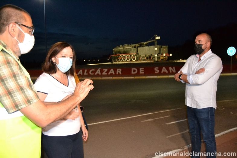 Desde este martes, concretamente desde las diez de la noche, el nombre de Alcázar de San Juan brilla con intensas luces de colores en la rotonda principal de entrada al municipio (cercana a Barataria). Rotonda presidida por una gran locomotora, en la que ya figuraba dibujado el nombre de la ciudad, mejorado ahora con grandes letras luminosas de colores, similares a la iluminación ornamental de la fachada del Ayuntamiento y los molinos del cerro San Antón.