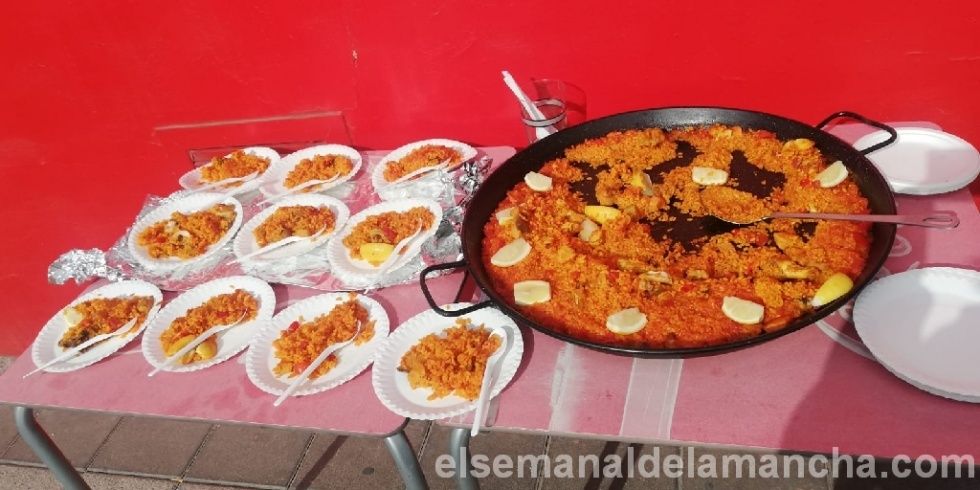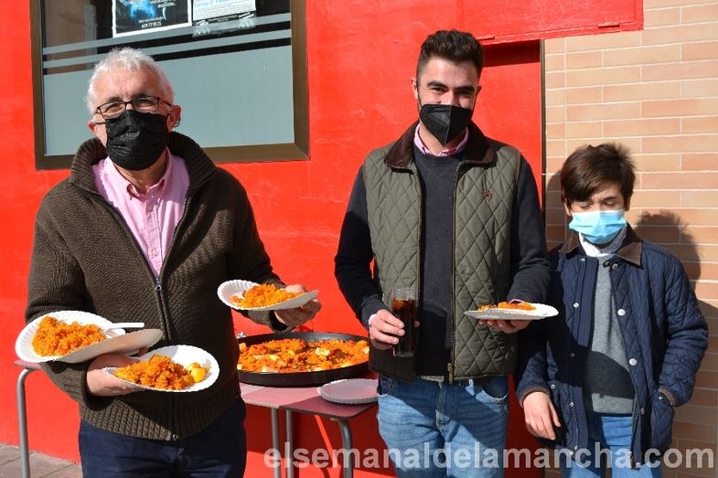 Participantes en el desfile y público en general que han tenido ocasión de saborear una deliciosa paella detrás de la ermita, por gentileza de discobar Pîpol´s y Avícola Manchega.