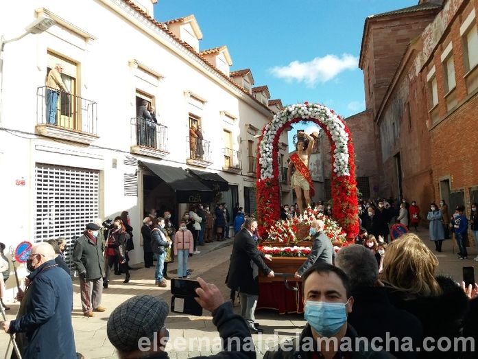 Alcázar de San Juan celebra este fin de semana la festividad de San Sebastián, con los tradicionales actos organizados por la Hermandad. Después de un año sin actos en la calle por las restricciones sanitarias, la imagen de San Sebastián ha vuelto esta mañana a procesionar como es costumbre, recorriendo el barrio del Arenal, desde Santa Quiteria hasta su ermita en el Santo, acompañada por la banda de música, numerosos jinetes a caballos, responsables y miembros de la Hermandad, autoridades, representantes de las Cofradías y devotos en general.