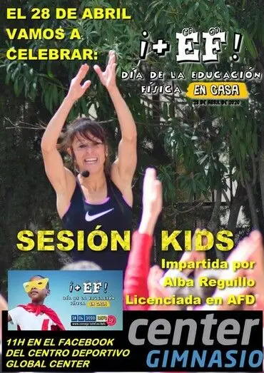 Para ello cuentan con la colaboración de la Licenciada en Actividad fisica y deporte alcazareña Alba Reguillo, la cual impartirá una clase Kids el día 28 de abril a las 11h desde el perfil de Facebook del Centro Deportivo Global Center. Dicha actividad será en abierto y podrán disfrutarla, no solo los alumnos de los centros mencionados, sino que todo el mundo que lo desee podrá formar parte de este gran evento a nivel nacional.