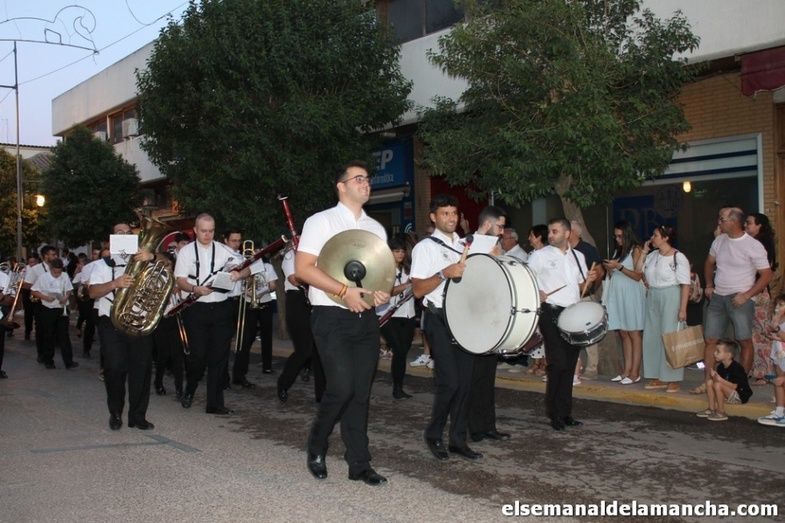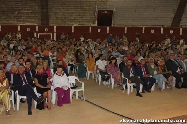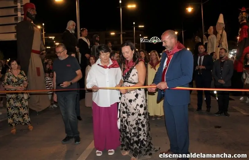 Debido a las obras de la Plaza de España, este año se ha cambiado el orden de los actos y tras la recepción ha tenido lugar la imposición del pañuelo a las estatuas de Don Quijote y Sancho Panza en la Plaza a cargo de la Agrupación Musical El Perdón, en su décimo quinto aniversario. La Agrupación ha participado también en el desfile de la comitiva hasta la Plaza de Toros, presidido por la Asociación Banda de Música y los gigantes y cabezudos, que han protagonizado varios bailes durante el camino.