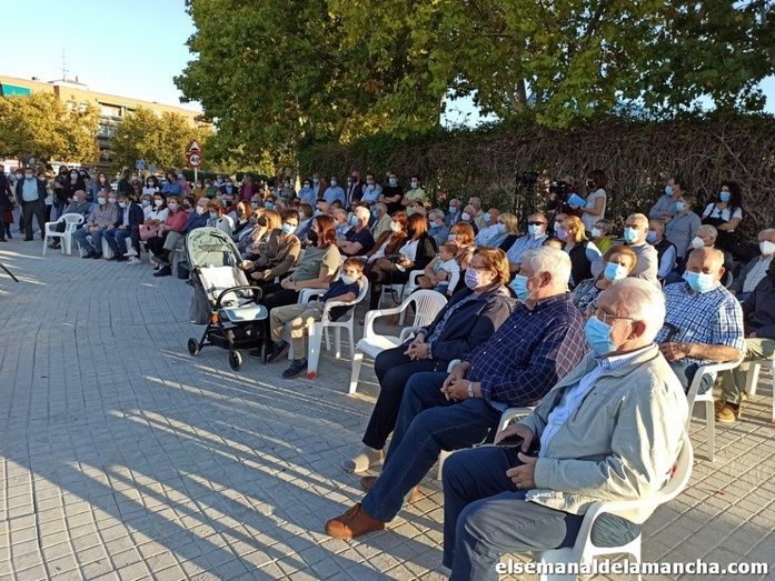 Miembros de la Corporación actual y de anteriores, viuda e hijas, amigos y vecinos han asistido al acto en el que han tomado la palabra la exconcejala socialista Mari Ángeles Pérez Montero, el exconcejal y teniente de alcalde, Joaquín Escribano, la hija mayor de Anastasio, Sara López Castillo y la alcaldesa de Alcázar, Rosa Melchor.