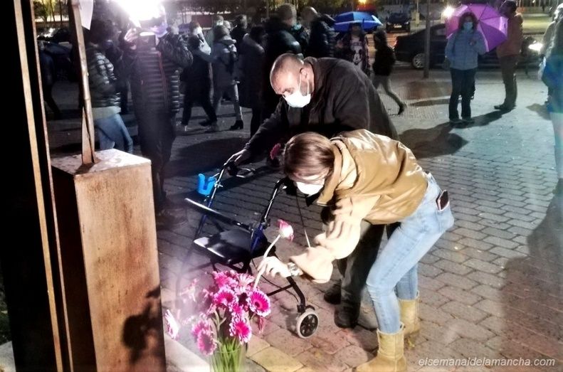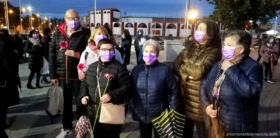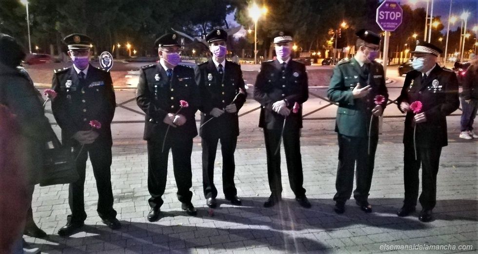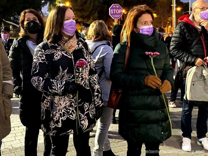 Por delante del monolito (el mismo que antes estaba en la zona del Acapulco, instalado durante la pandemia junto a la palmera de entrada al mercadillo) han ido pasando autoridades, representantes de las asociaciones, vecinos en grupos y de manera individual, además de policías y guardias civiles, para depositar una flor y protestar simbólicamente contra la violencia de género en todas sus formas.