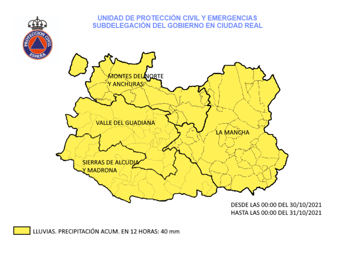 La Unidad de Protección Civil y Emergencias de la Subdelegación del Gobierno en Ciudad Real informa sobre el nivel de alerta amarillo establecido a partir de hoy en la provincia ante la previsión de episodios meteorológicos adversos por parte de la Agencia Estatal de Meteorología, especialmente para el día 30.