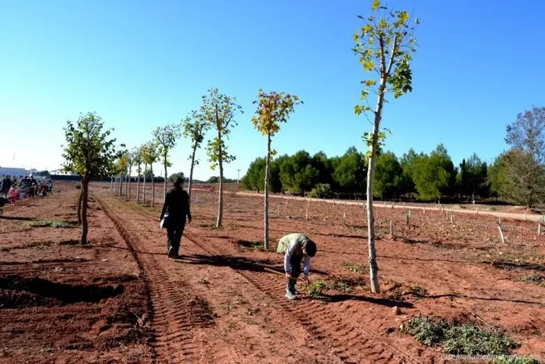 El Bosque de la Vida de Alcázar de San Juan sigue creciendo, gracias principalmente a las plantaciones que en domingo llevan a cabo muchas familias, pero también al traslado de algunos ejemplares desde otros puntos de la ciudad, como los procedentes del entorno de la plaza de toros que pudieron salvarse.