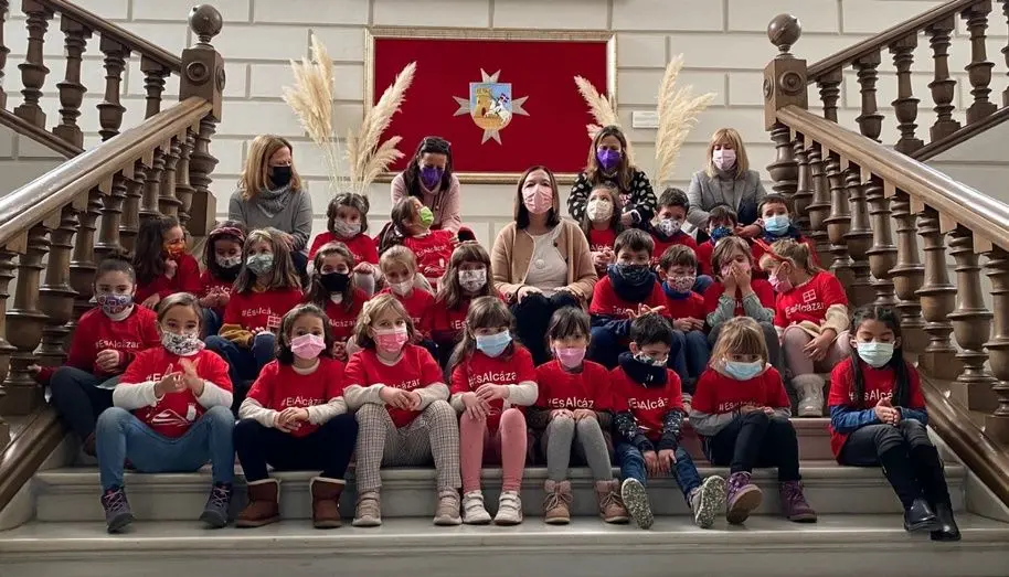 Con la camiseta roja de “EsAlcázar”, la visita ha terminado con una foto en la escalinata del ayuntamiento para recuerdo de la visita al consistorio por el que también han recorrido las dependencias, interesándose por la gente que trabaja allí y que ayudan a la alcaldesa.