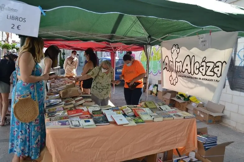 La Protectora de Animales Animalcázar ha instalado esta mañana un mercadillo de libros de segunda mano en la calle Castelar, para vender las publicaciones que reciben como donaciones y recaudar fondos con los que sostener los gastos generados por sus animales (más de 200 ejemplares entre gatos y perros). El mercadillo, según ha explicado una de sus responsables, volverá a montarse cada quince días, dada la gran cantidad de libros que se han recogido; y en él pueden encontrarse todo tipo de géneros y formatos.