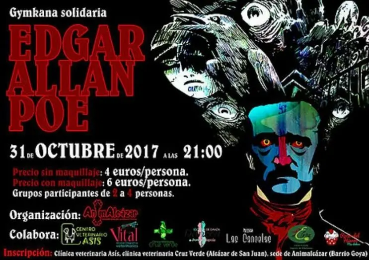 La asociación protectora de Animales y Plantas, Animalcazar, invita a los ciudadanos a participar en su primera gymkana solidaria que tendrá lugar el próximo 31 de octubre en la plaza de España a partir de las 21:00h.evento que se ha preparado con mucha ilusión con intención de que sea distinto y para el disfrute de todos los participantes. La temática elegida para la gymkana es la obra del escritor norteamericano Edgar Allan Poe. Los participantes deberán recorrer distintos puntos de la localidad a través de pistas halladas en fragmentos de sus poemas y relatos.