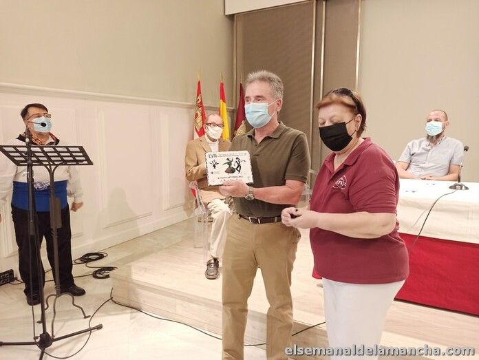El actos, celebrado con poca asistencia por el control de aforo en el Salón Noble, contó también con la presencia del concejal de Cultura y presidente del PMC, Mariano Cuartero, quien destacó que este Festival supone uno de los eventos más importantes y con más empaque de los Escenarios de Verano de la ciudad, organizado por un colectivo con una importante trayectoria lo largo de más de cincuenta años. Cuartero apuntó que desde el Ayuntamiento se suman al reconocimiento realizado por la Asociación, y señaló que igual que los Coros y Danzas reconocen la labor de otras personas, el Ayuntamiento y el pueblo de Alcázar reconoce la labor de la Asociación en la ciudad “porque hacen una labor muy importante y pedagógica en la difusión de los usos y costumbres”.