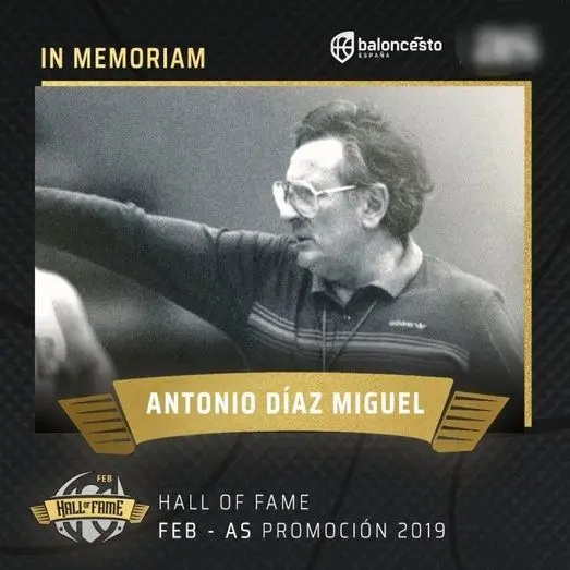 "Este año, queremos recordar y homenajear a un alcazareño ilustre a título póstumo, primer miembro europeo del HALL FAME FIBA de Springfield (USA) desde 1997, récord de 27 años dirigiendo la Selección Española de Baloncesto y con un magnífico palmarés tanto como jugador así como entrenador: ANTONIO DÍAZ-MIGUEL, coincidiendo con el nacimiento del HALL FAME del Baloncesto en España, el pasado 21 de octubre, donde nuestro paisano figura entre los primeros 18 integrantes", explican los responsables de ASECEM, quienes agradecen que su viuda, Eva Latorre, haya tenido el honor de aceptar la invitación a esta tan especial jornada, para recoger el nombramiento.