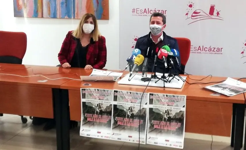 La concejala de Comercio, Bárbara Sánchez-Mateos y el vicepresidente de ASECEM, Gustavo González han presentado esta mañana en rueda de prensa "Boulevard Outlet Alcázar", una nueva cita con el Comercio de la ciudad que tendrá lugar los sábado 6 y 13 de marzo, en horario de mañana a lo largo del eje comercial de Alcázar de San Juan.