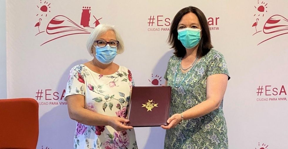 La alcaldesa de Alcázar de San Juan, Rosa Melchor, y la presidenta de la Asociación de Familias de Personas con Discapacidad (AFADIS), Julia Abengózar han renovado el convenio anual de colaboración para la prestación del servicio de transporte adaptado.
