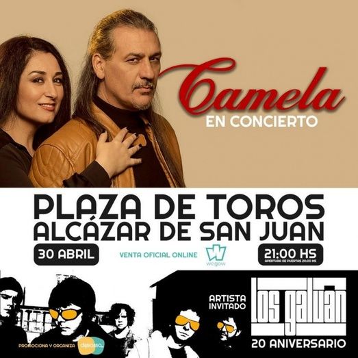 El concierto del conocido dúo compuesto por Ángeles y Dioni, Camela, está a pocos días de ser una realidad en la Plaza de Toros de Alcázar de San Juan. Será este sábado, 30 de abril, a partir de las 21:00 horas dentro de los actos organizados con motivo de la Feria de los Sabores.