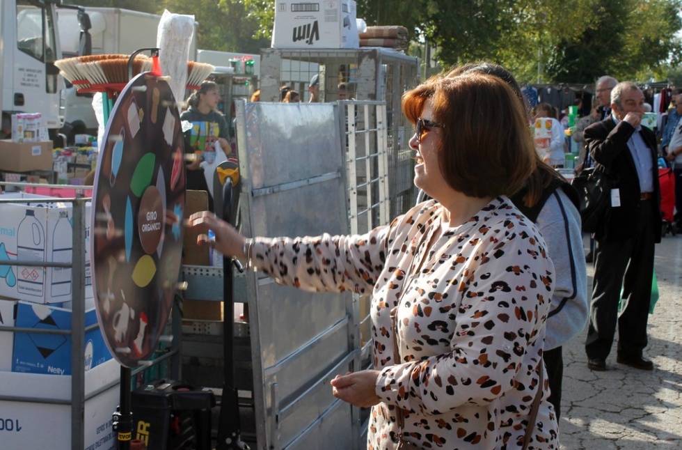 El mercadillo de Alcázar de San Juan ha sido el lugar elegido este lunes para informar y concienciar sobre el uso del contenedor marrón, una campaña que está llevando a cabo la Consejería de Desarrollo Sostenible de la Junta de Comunidades a través de fondos europeos y que en esta ocasión la están realizando las educadoras ambientales Nuria García y María.