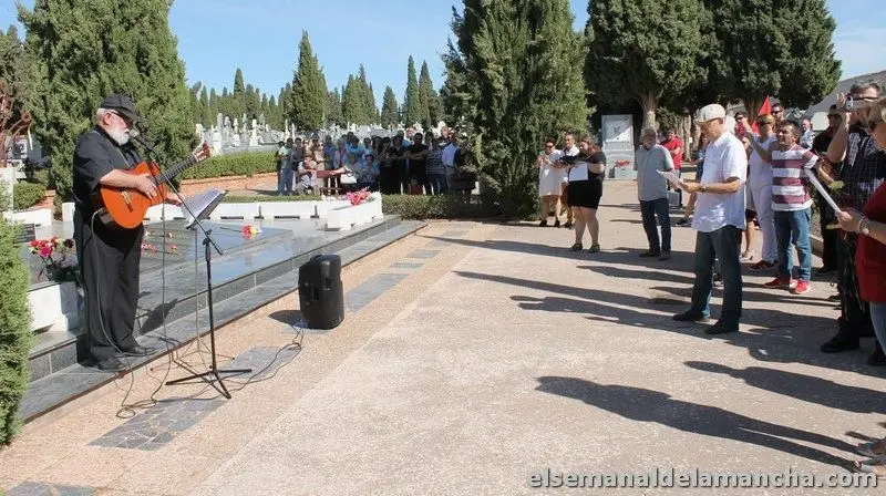 Cerca de 200 personas han asistido este domingo, en el cementerio Civil de Alcázar, al acto homenaje por el 80 aniversario de los fusilamientos de más de un centenar de personas republicanas a manos de los fascistas en las tapias del cementerio de Alcázar.