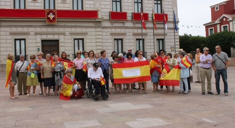 Unas cuarenta personas se han concentrado este mediodía en la puerta del Ayuntamiento de Alcázar de San Juan convocados por la Fundación DENAES para la defensa de la nación española, que había convocado concentraciones para este sábado a las 12:00 frente a los ayuntamientos de todas las ciudades bajo los siguientes lemas: ‘Es hora de que se escuche a la España silenciosa’ y ‘España somos todos’.