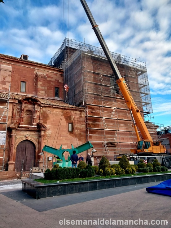empresa constructora ha tenido que instalar una gran grúa en la plaza de Santa Quiteria, para lo que fue preciso incluso cortar el tráfico.
