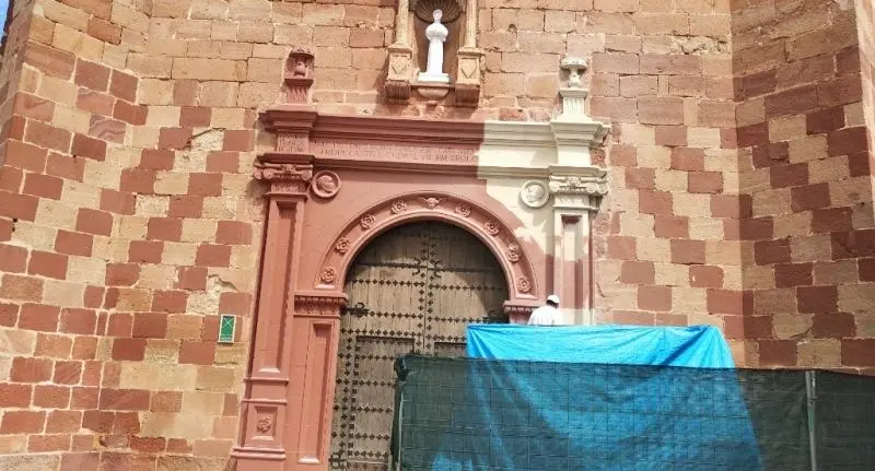 Después de seis meses desde que fuera pintado por los franciscanos de Alcázar de San Juan, ya han comenzado los trabajos de reversión del pórtico de la Iglesia de San Francisco, que fue pintado en el mes de noviembre con una pintura de color rojizo encargada por los padres franciscanos.