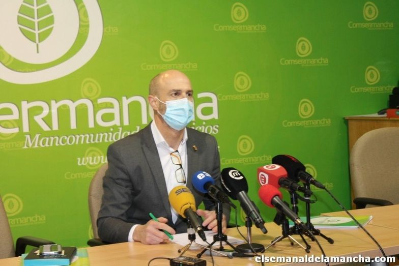 El presidente de la Mancomunidad de Servicios Comsermancha, Pedro Ángel Jiménez, ha informado este martes, en rueda de prensa, de los datos de recogida de residuos a lo largo del pasado año, una cifra que ha disminuido con respecto a 2020 y que se ha situado en 70.615 toneladas, esto supone, según ha explicado, 387,57 kilos por persona y año (1,6 kg al día).