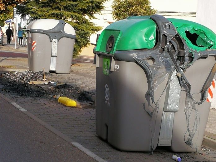 Este es el aspecto que presenta uno de los conjuntos de contenedores de la calle Carmen de Alcázar de San Juan, derretidos parcialmente y dañados supuestamente por el fuego. Según explican varios vecinos, los contenedores llevan así desde el domingo, aunque se desconoce exactamente la causa concreta que provocó el suceso. Pudo ser el vandalismo pero también las ascuas o cenizas mal apagadas de algún brasero o de alguna calefacción de leña. Lo cierto es que tendrán que ser respuestos próximamente por Comsermancha y cada contenedor, según las cifras que en alguna ocasión ha facilitado la Mancomunidad, cuesta unos mil euros de dinero público.