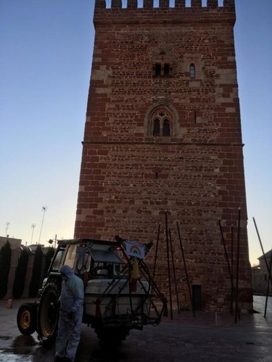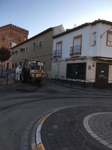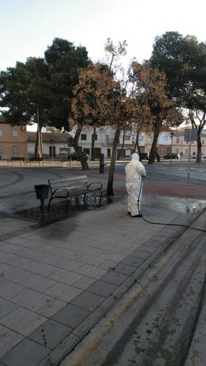 La desinfección de las calles en Alcázar de San Juan continúa. Este viernes, como cada día se ha actuado en las zonas de más afluencia diaria de personas, como son supermercados, hospital, farmacias, estancos, etc.