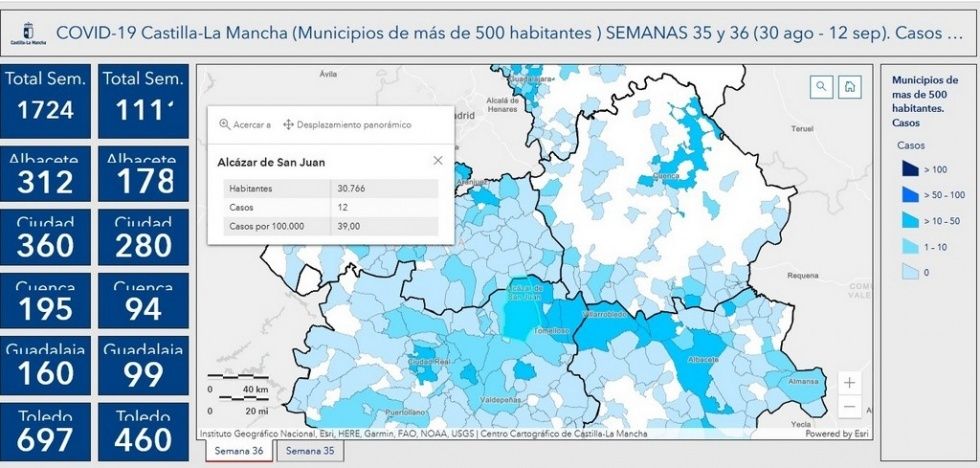 Donde sí han subido los positivos ha sido en Manzanares, que ha pasado de 3 en la semana 35 a 10 en la semana 36, y en Socuéllamos, que registra 9 en la semana 35 y 14 en la última semana, hasta el 12 de septiembre.