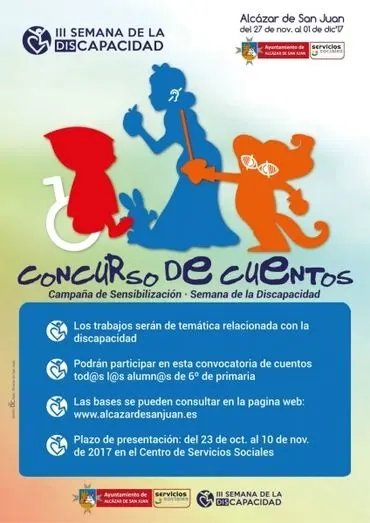 Con motivo de la Conmemoración del Día de las Personas con Discapacidad el próximo 3 de Diciembre, y dentro de las actividades programadas para sensibilizar a los más jóvenes en torno a la discapacidad, el Centro de Servicios Sociales de Alcázar de San Juan organiza el Certamen de Cuentos como parte de las actividades programadas en la III Semana de la Discapacidad.