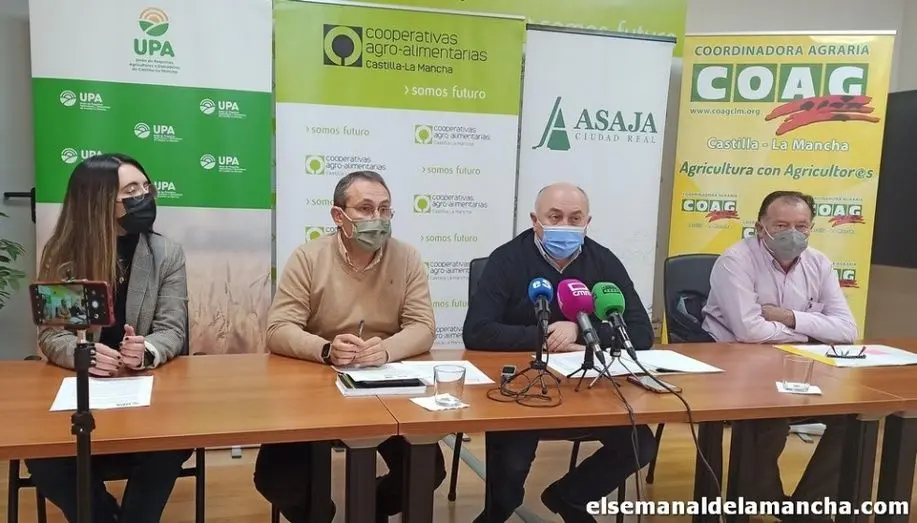 Responsables de Cooperativas Agro-alimentarias de C-LM, Asaja, UPA y COAG, han animado hoy, en Alcázar de San Juan, a los agricultores de la provincia y en definitiva de la región, a llenar las calles de Ciudad Real el próximo jueves 17 de febrero con motivo de la manifestación organizada por estos colectivos en denfesa del futuro y la rentabilidad de la agricultura y la ganadería.