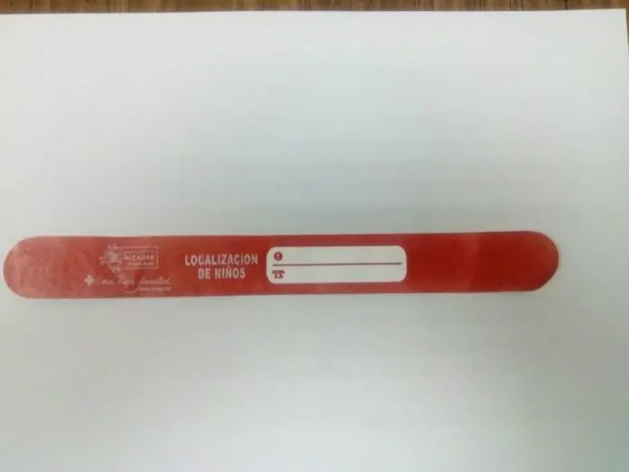 Las pulseras identificativas llevan en tinta indeleble y permanente el nombre de los niños y niñas y el número de teléfono de sus padres, madres o tutores. Las pulseras permiten, por lo tanto, que los usuarios se mojen sin que se borren sus datos.