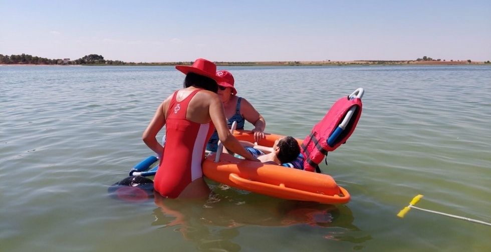 Durante todos los jueves de julio y de agosto, Cruz Roja en Alcázar de San Juan presta el servicio de ‘Baño asistido en las Lagunas de Villafranca de los Caballeros’, dirigido a personas con alguna discapacidad física o personas mayores con movilidad reducida.